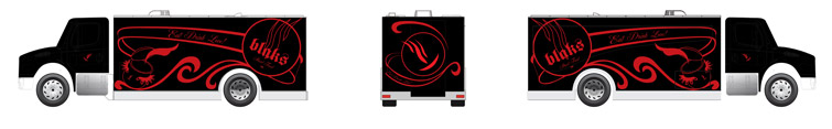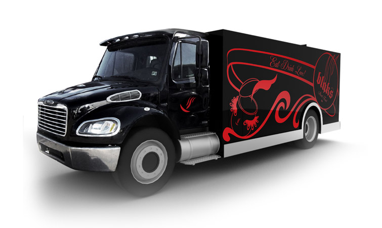 Task: To create a mobile kitchen based on a Freightlinertruck. The truck will go around the city and sell lunches at special points of purchase. To create edge graphics of the kitchen and a new company logo.