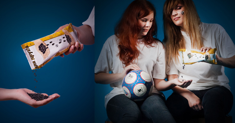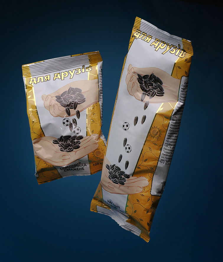 Концепция: Быть добрее, ближе друг к другу – пропаганда данного продукта! Разделяй эмоции и семечки с друзьями! Все это выражено в незатейливой и лаконичной графике нашей упаковки. Из рук в руки, если дословно переводить картинку!