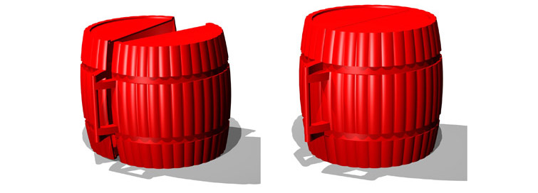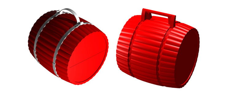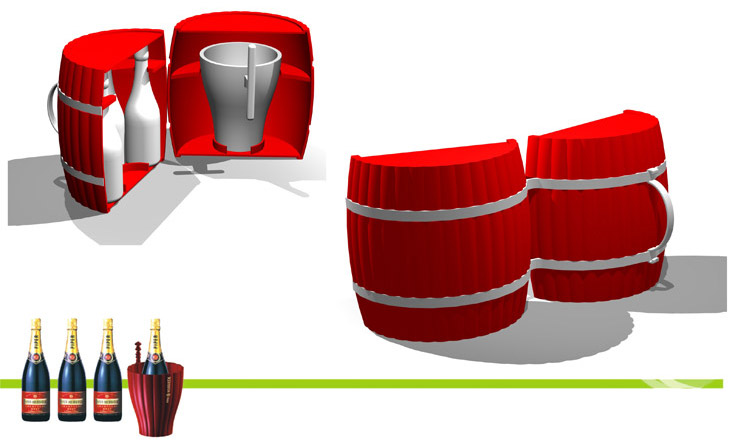 Концепция: Бочонок хранит в себе бутылки с шампанским. Его удобно переносить, в нем ничего не побьется, его легко открыть и его можно поставить на видном месте в баре.