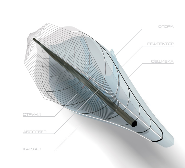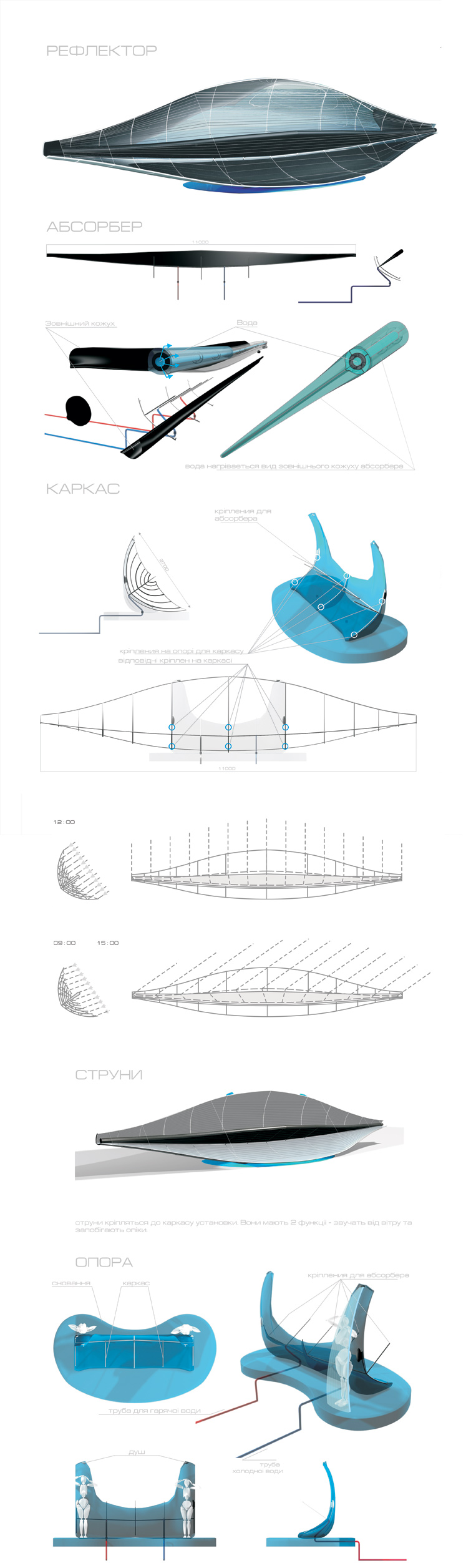 «Солярия» разработана на основе принципов мультисенсорного дизайна. Помимо ландшафта, «Солярия» создает также особую звуковую среду. 34 струны натянуты вдоль каркаса установки. Когда дует ветер, звучание струн напоминает игру на большой гитаре или арфе — таким образом создается уникальное интерактивное звуковое пространство.