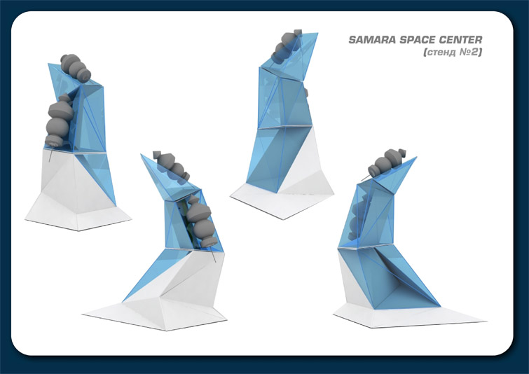 Концепция: Стенд выполнен в стиле «кристалл». Выглядит эффектно и стильно. Грани стендов вращаются - тем самым меняют свою форму – поочередно показывая зрителям презентационную информацию.