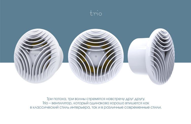 Trio – вентилятор, который одинаково хорошо впишется как в классический стиль интерьера, так и в различные современные стили.