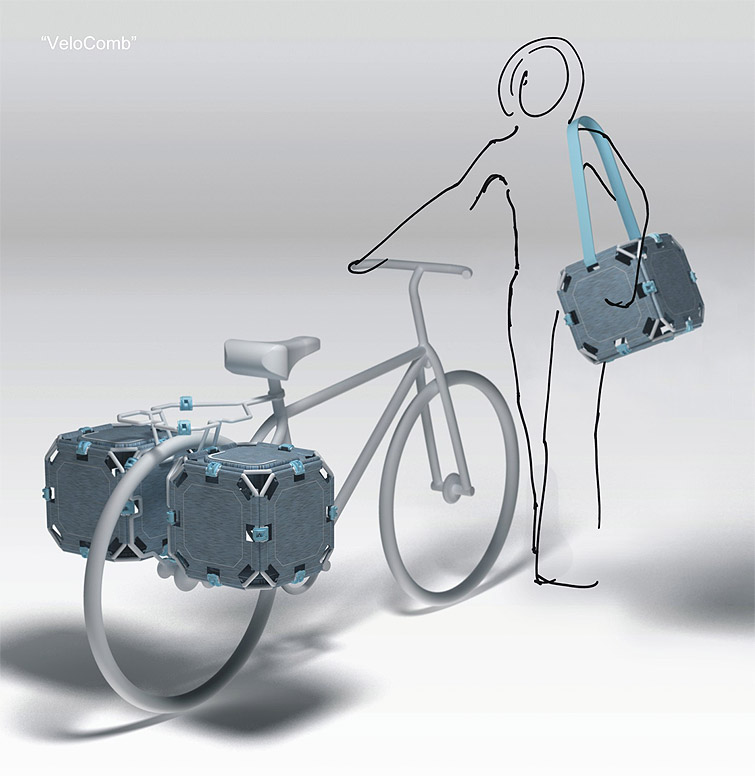 Концепция: Прицепной модуль для городских и туристических велосипедов VeloCombпредназначен для перевозки грузов (спортивный инвентарь, одежда, продукты питания) и небольших домашних питомцев.