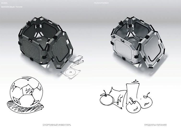 Покупать весь комплект необязательно. Если перевозить много габаритного груза не планируется, можно купить 12 или 6 типоэлементов и 32 или 14 креплений соответственно. Типоэлементы соединяются друг с другом при помощи креплений. Предлагаемый принцип крепления широко применяется для спортивных рюкзаков, обуви и т.п. Его достоинства – надежность, простота. Застегивание и расстегивание происходит буквально в один щелчок. Фиксация очень надежна. Эластичная ручка с регулируемой длиной позволяет носить VeloСombна плече или в руке.